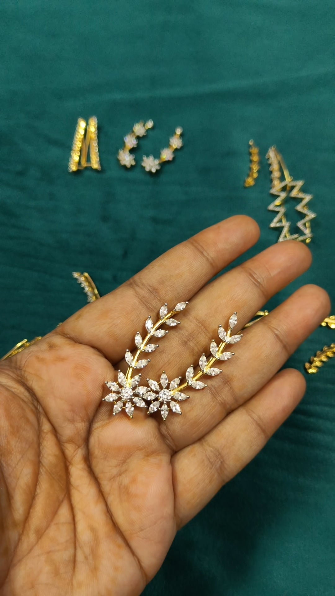 ✨ Minimal yet magical, the Shweta earcuffs are designed to hug your ears with a chic leafy silhouette. Crafted with premium gold-tone plating and encrusted with sparkling AD stones, these cuffs beautifully replicate the brilliance of real diamonds.