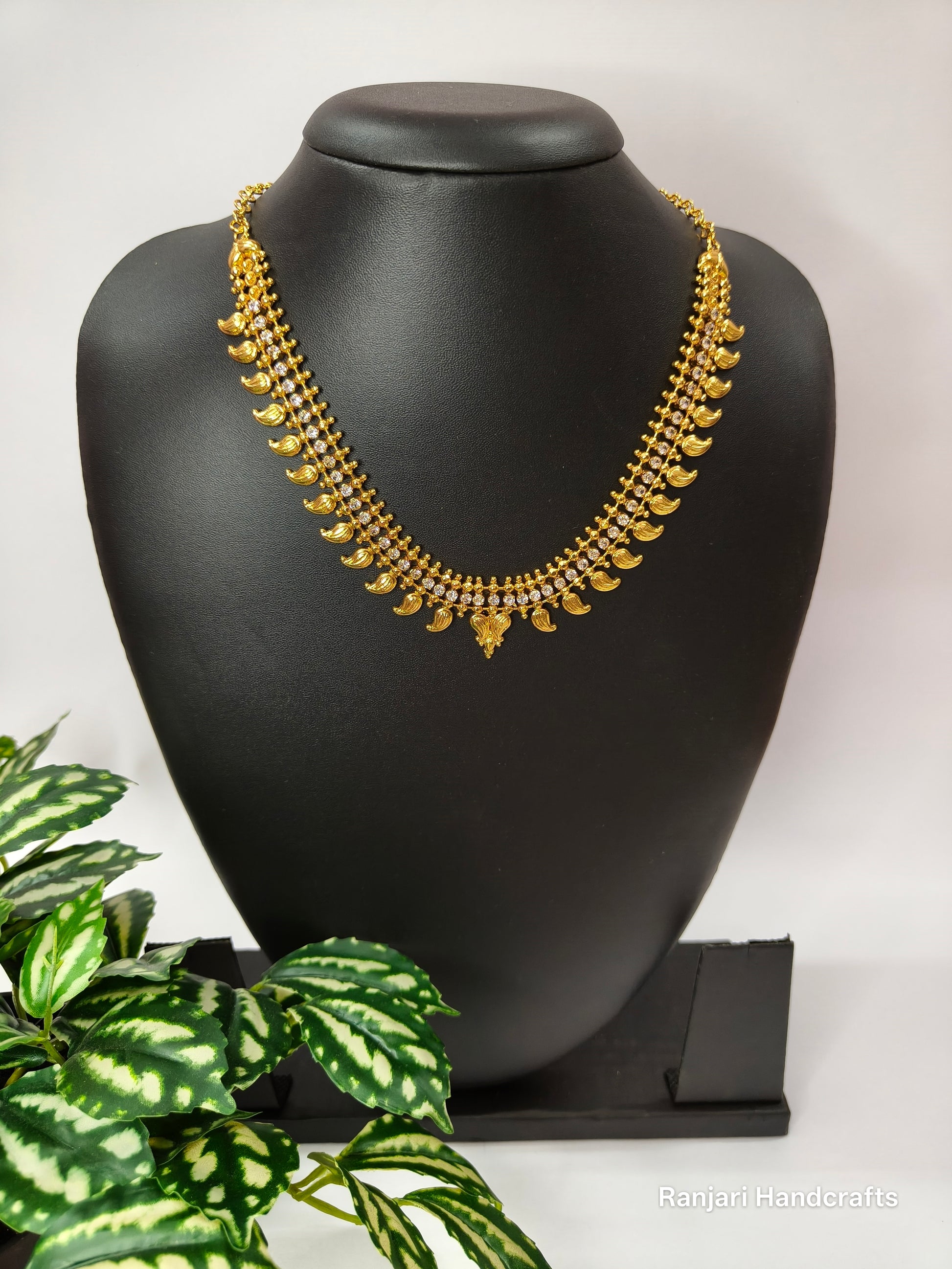 The Kerala Maanga Maala features exquisite white AD stones that add a refined sparkle, enhancing its traditional design with a subtle contemporary touch. Enjoy the shine worry-free with a 6-month warranty!
