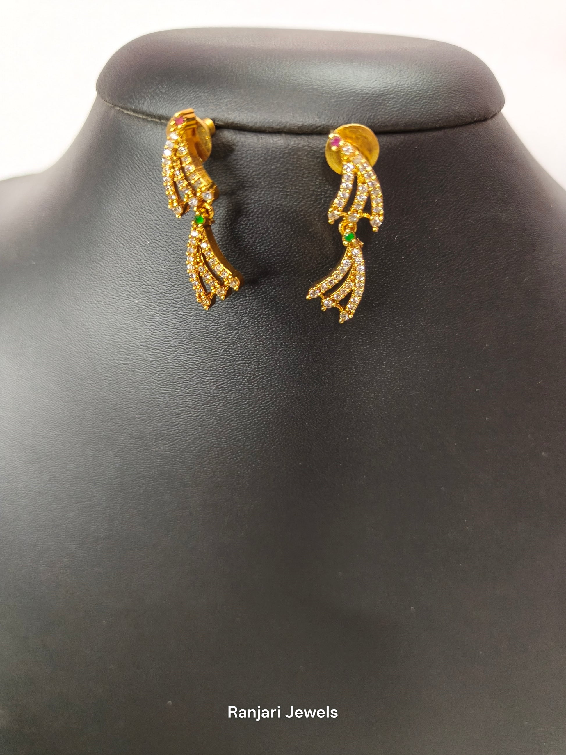 Elegant feather-style AD stone necklace with matching earrings – lightweight & stylish for party or daily wear.
